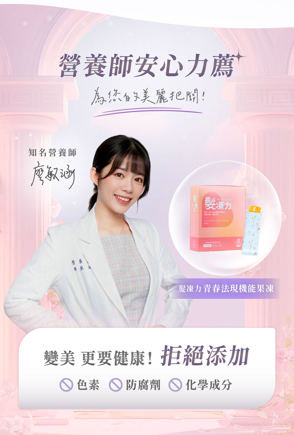 結合魚膠原蛋白與鮭魚精巢 DNA,從日常營養補充中維持髮絲飽滿與亮澤印象。
